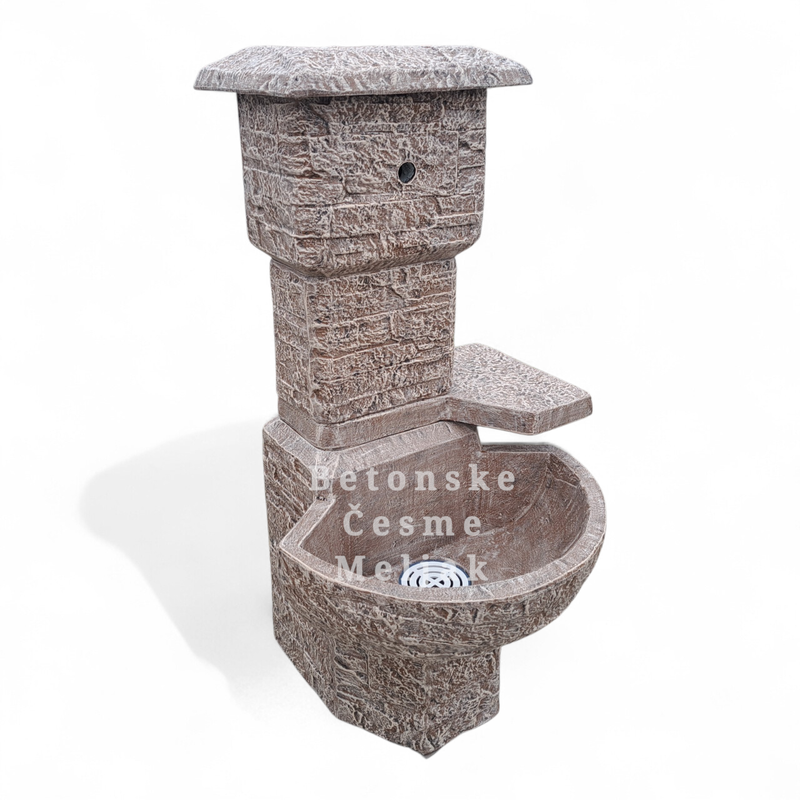 Česma Studenica donosi mir i eleganciju kamena u svako dvorište. Njena površina, obložena kamenim štanglicama, podseća na zidove starih manastira i tradicionalne majstorske radove. Sklad proporcija i prirodna tekstura stvaraju utisak trajnosti i topline, dok čvrsta betonska osnova obezbeđuje dugovečnost. Studenica je česma koja spaja duh tradicije sa modernom izradom — jednostavna, autentična i postojana.